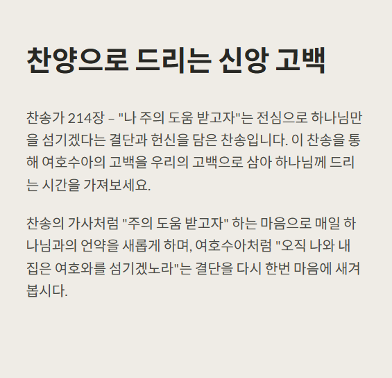 믿음은 한순간의 감정이 아니라, 하나님의 행하심을 기억하며 매일 새롭게 다짐하는 관계입니다. 그리고 이 고백은 세상 앞에서도, 자녀들 앞에서도 담대히 선포되어야 할 신앙의 증거입니다.
