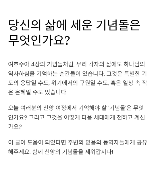 기념돌을 세우듯 삶에 믿음의 이정표를 남겨야 합니다.