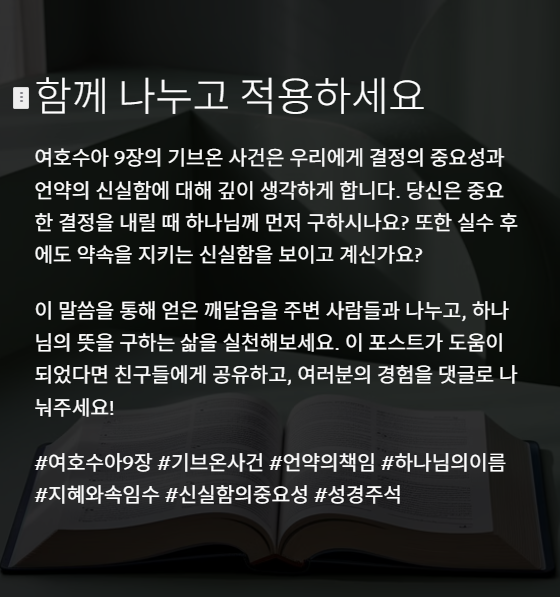 여호수아 9장 강해 주석 - 기브온의 꾀와 언약의 무게