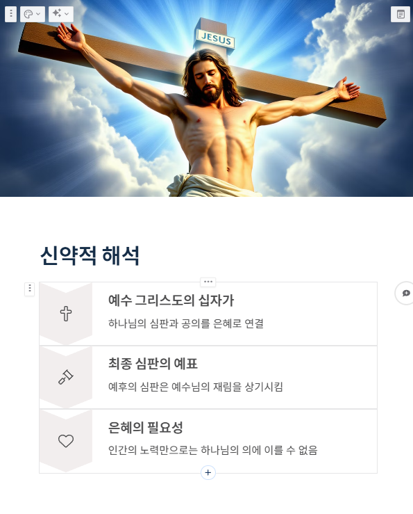 신약에서는 하나님의 심판과 공의, 그리고 인간의 불완전함을 예수 그리스도의 십자가와 은혜로 연결하여 해석합니다. 예후의 심판은 예수님의 다시 오심과 최종 심판을 상기시키며, 그러나 예후의 불완전함은 인간의 노력만으로는 하나님의 의에 이를 수 없음을 보여줍니다. 오직 예수님의 보혈과 은혜를 통해 참된 속죄와 회복이 가능함을 강조합니다.