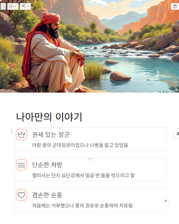 열왕기하 5장은 아람 왕의 군대장관 나아만이 나병을 앓고 있다가, 이스라엘의 선지자 엘리사를 통해 치유되는 사건을 중심으로 전개됩니다. 나아만은 자신의 지위와 선물로 병을 고치려 했으나, 엘리사는 단지 요단강에서 일곱 번 몸을 씻으라는 말씀만 전합니다. 처음에는 화를 내던 나아만이 종의 권유로 순종하자 치유를 경험하고, 참 하나님을 고백하게 됩니다. 이 사건은 외형보다 내면, 권위보다 믿음, 종교적 형식보다 겸손한 순종이 하나님의 은혜를 여는 열쇠임을 보여줍니다.