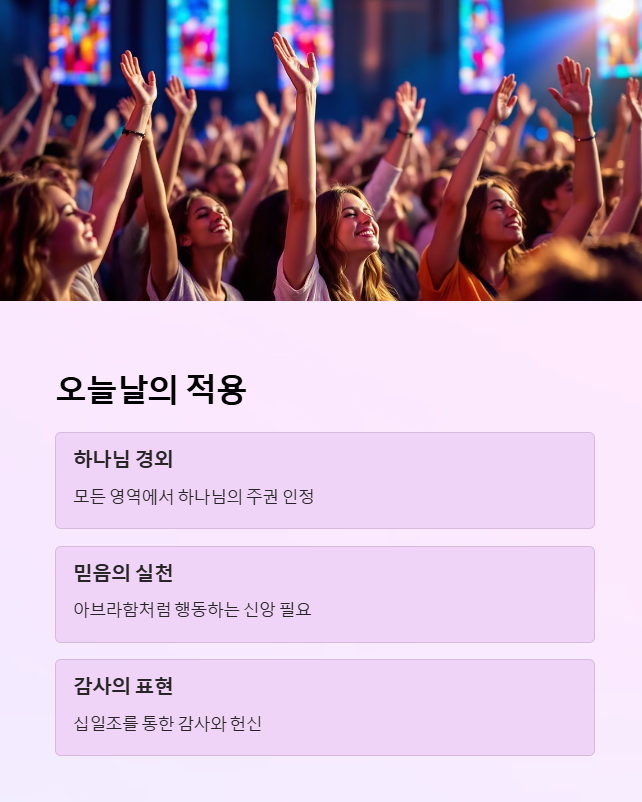 멜기세덱의 축복과 아브라함의 십일조는 하나님을 경외하는 신앙의 본보기입니다. 우리는 하나님의 주권을 인정하며, 믿음으로 행동하는 삶을 살아야 합니다.