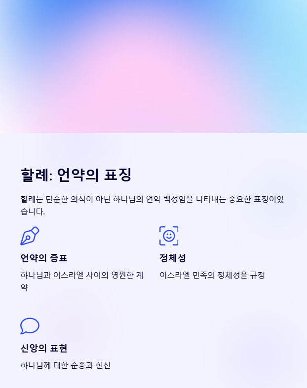 • 현대 신학에서는 할례가 단순한 의식이 아니라, 하나님의 선택과 신앙 공동체의 소속을 나타내는 상징으로 해석됩니다.