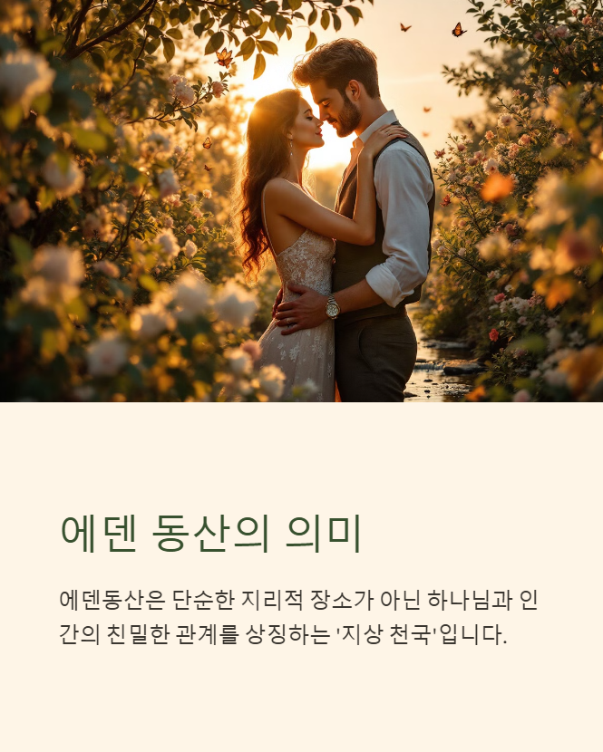 • '에덴' (עֵדֶן) – ‘즐거움, 기쁨’이라는 의미를 가지고 있어 에덴동산이 단순한 공간이 아닌 하나님과의 친밀한 교제의 장소임을 시사합니다.