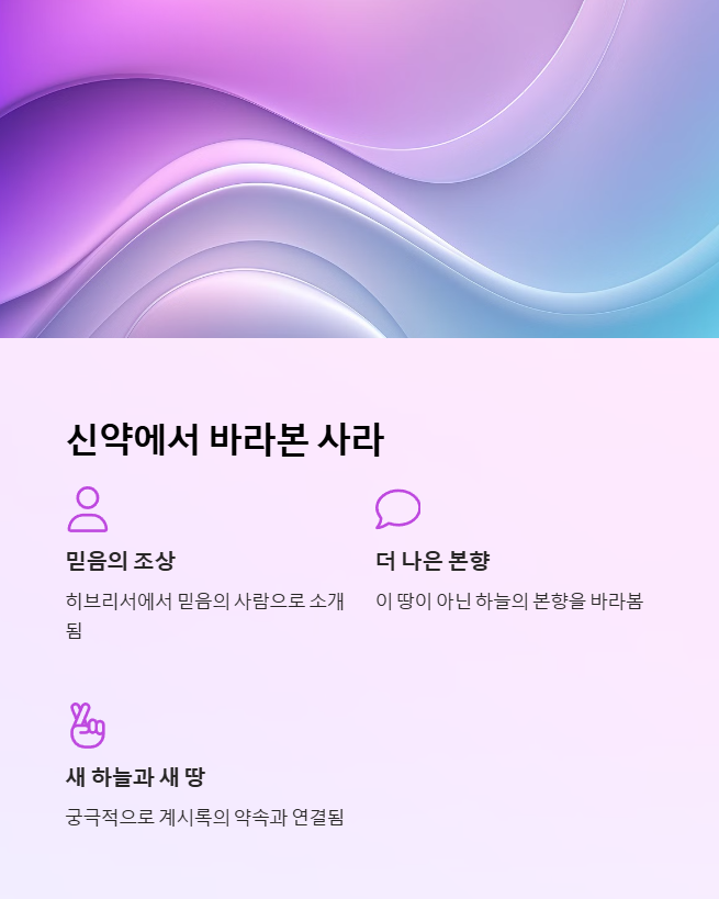 사라는 믿음의 조상으로서 신약에서 높이 평가됩니다. **히브리서 11:13-16**에서 아브라함과 사라는 이 땅이 아닌 더 나은 본향을 바라본 믿음의 사람들로 소개됩니다.