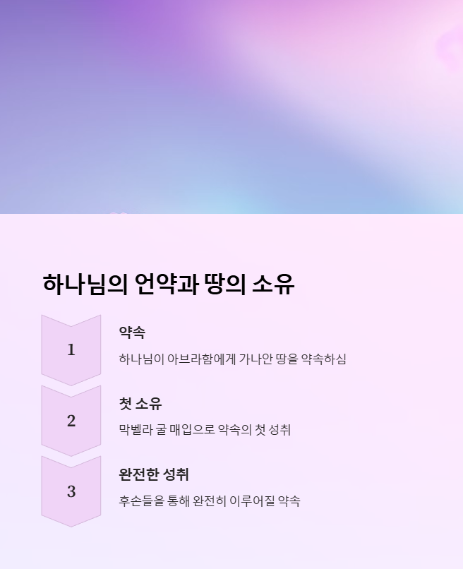 아브라함이 가나안 땅을 구입했다는 것은, 하나님의 약속이 부분적으로 성취되었음을 상징합니다. 그러나 완전한 성취는 그의 후손을 통해 이루어집니다.