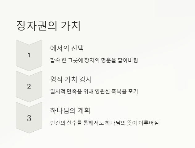 고대 사회에서 장자는 중요한 권리를 가지지만, 하나님께서는 전통적인 장자의 개념을 뛰어넘어 자신의 뜻을 이루십니다.