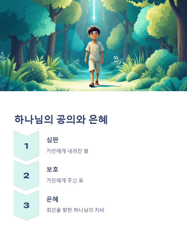 하나님께서는 가인에게 벌을 내리셨지만, 동시에 그를 보호하는 ‘표’를 주셨습니다. 이는 하나님의 은혜와 자비를 나타내는 중요한 요소입니다.