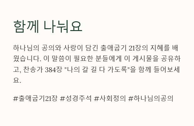 출애굽기 21장은 십계명 이후 처음 등장하는 구체적 율법 조항들로, 특히 사회적 약자인 종, 피해자, 여성에 대한 보호를 중심으로 한 정의와 책임의 법률을 다룹니다. 이는 공동체 내에서의 질서와 공의, 하나님의 마음을 반영하는 규례들입니다.