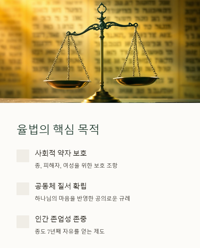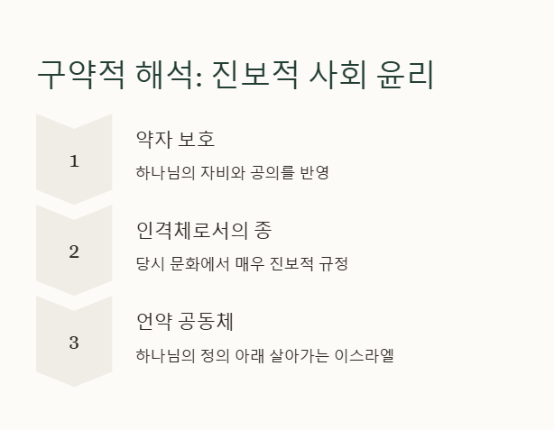 - 특히 약자를 보호하는 조항은 하나님의 자비와 공의를 함께 보여줍니다.