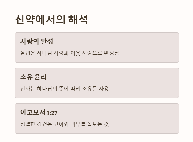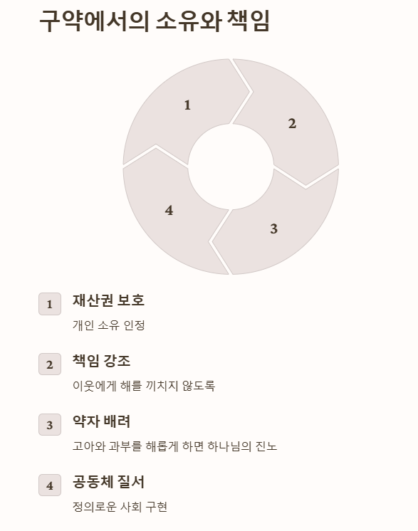 • 하나님은 개인의 소유를 보호하시지만, 그것이 이웃에게 해를 끼치지 않도록 책임을 명확히 하십니다.