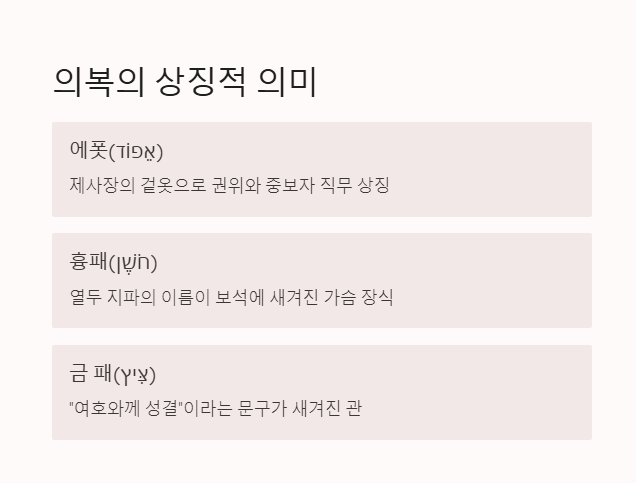- 의복은 외면뿐 아니라 내면의 준비와 성결함을 상징합니다.